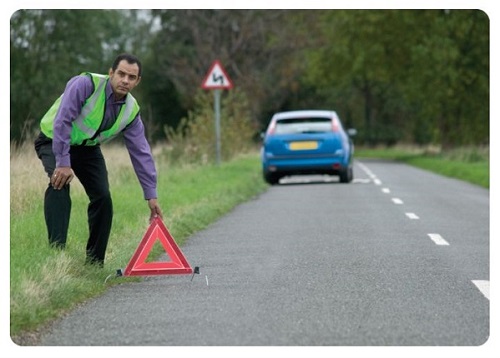 If you have a warning triangle, place it at least 45 metres (147 feet) behind your vehicle. This will warn other road users that you’ve broken down. However, never use a warning triangle on a motorway.