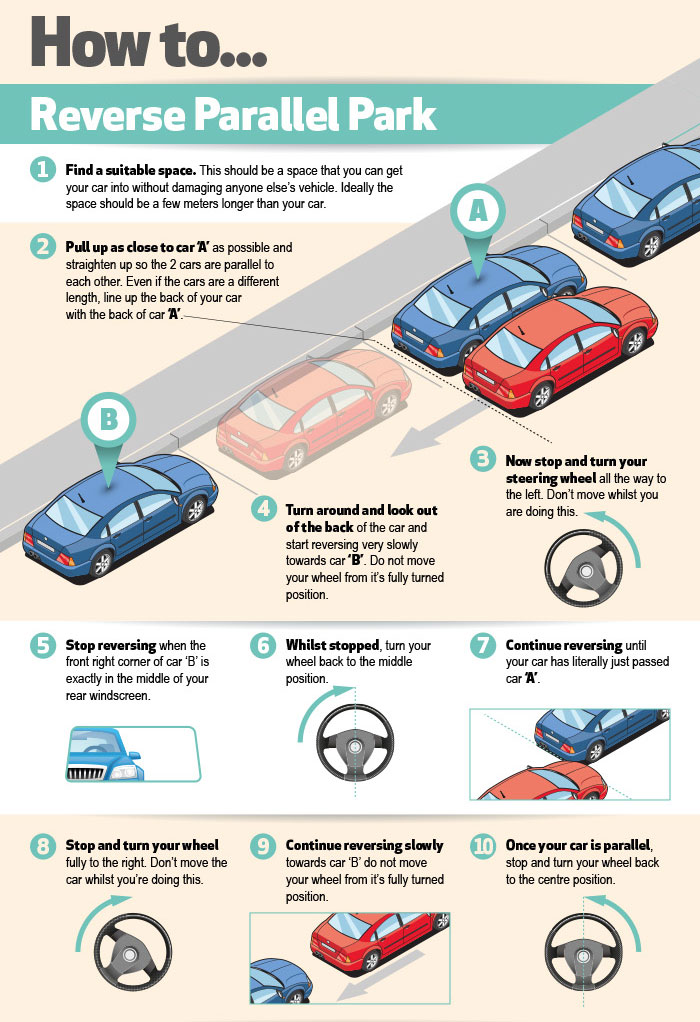 With parallel parking practice really does make perfect. Make sure you keep observing at all times throughout the manoeuvre and find your point of reference to allow you to reverse smoothly into the space. Follow these simple stages and you will soon become a parallel parking pro!