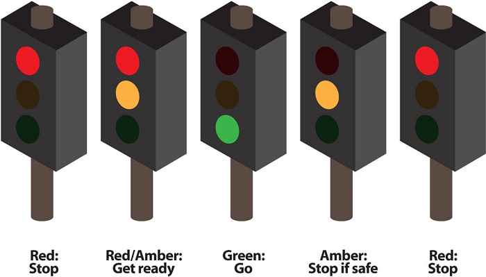 Red and Amber: Prepare to move but wait until the green shows to set off.